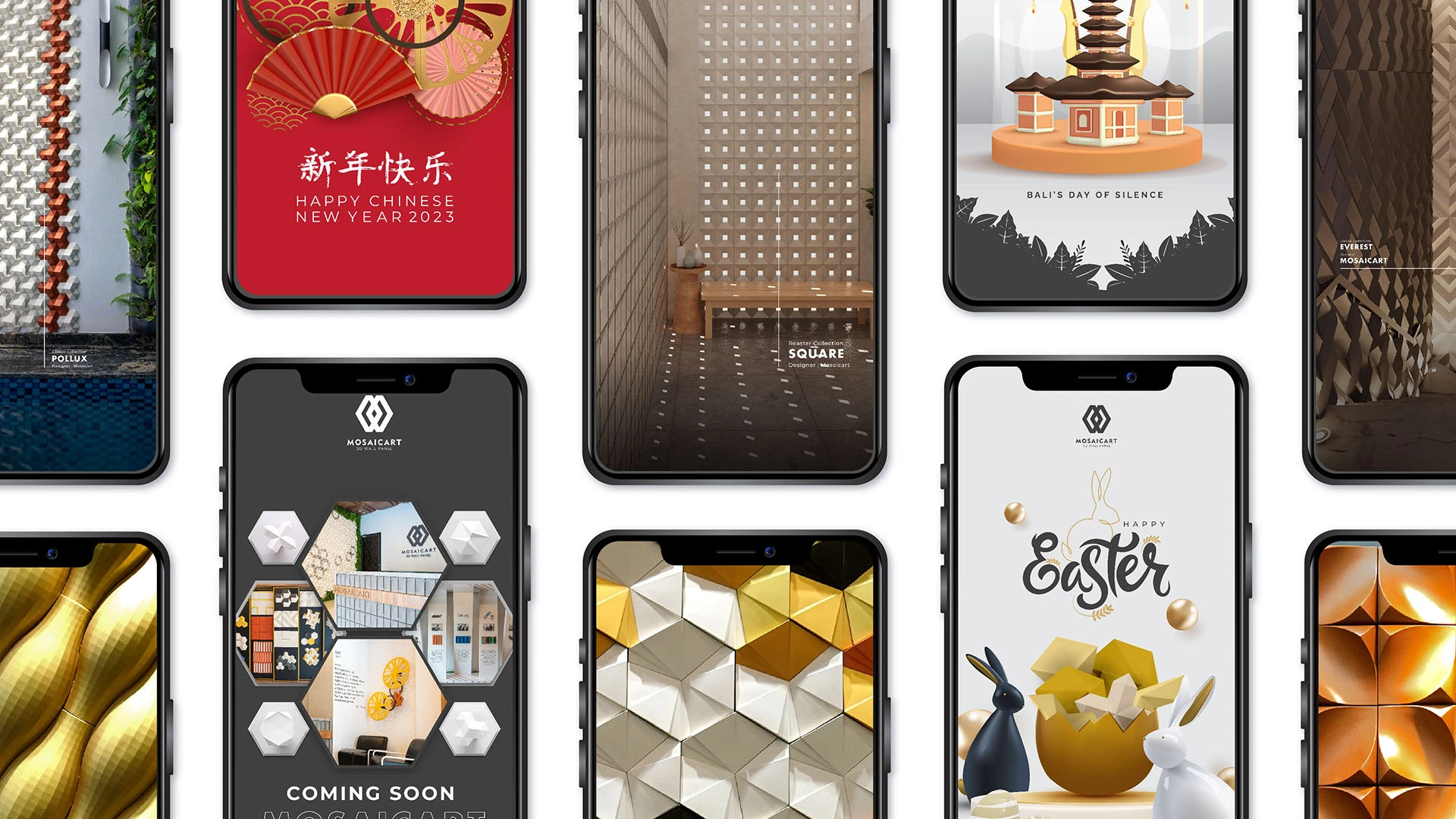 Solution: Since 2018, we have been consistently managing Mosaicart's social media presence, creating engaging content that highlights the uniqueness and creativity of their products. For the launch of the Signature Collection, we orchestrated a comprehensive campaign that highlighted the collaboration with seven prominent architects and designers. We crafted narratives around each contributor's inspiration and design process, creating a unique story for each piece in the collection. Through strategic social media posts and online webinars, we generated anticipation leading up to the launch and maintained momentum post-launch. Our efforts significantly amplified the reach of the Signature Collection, contributing to its successful reception in the market.